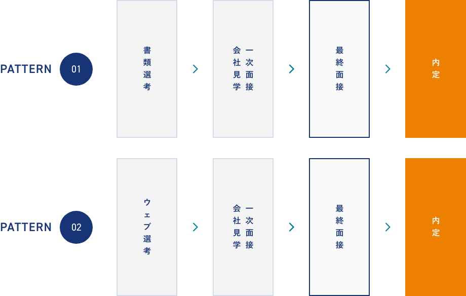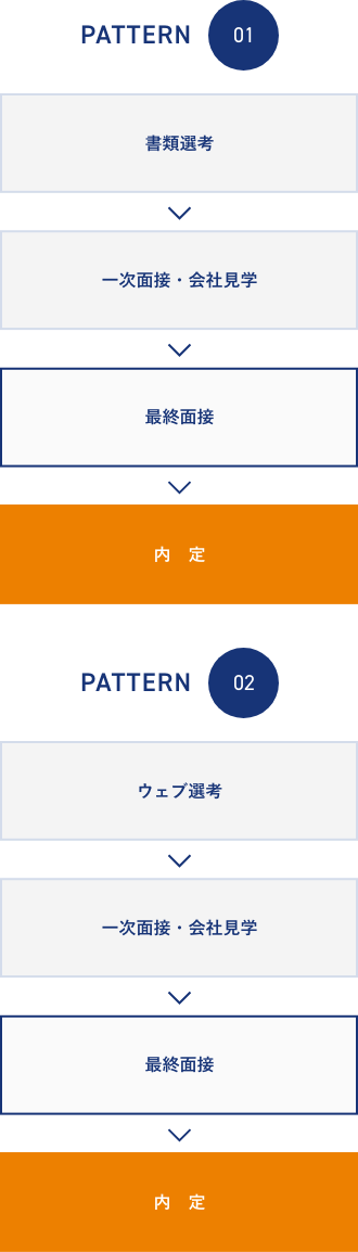 「書類選考」と「ウェブ選考」の2パターンを受け付けております。